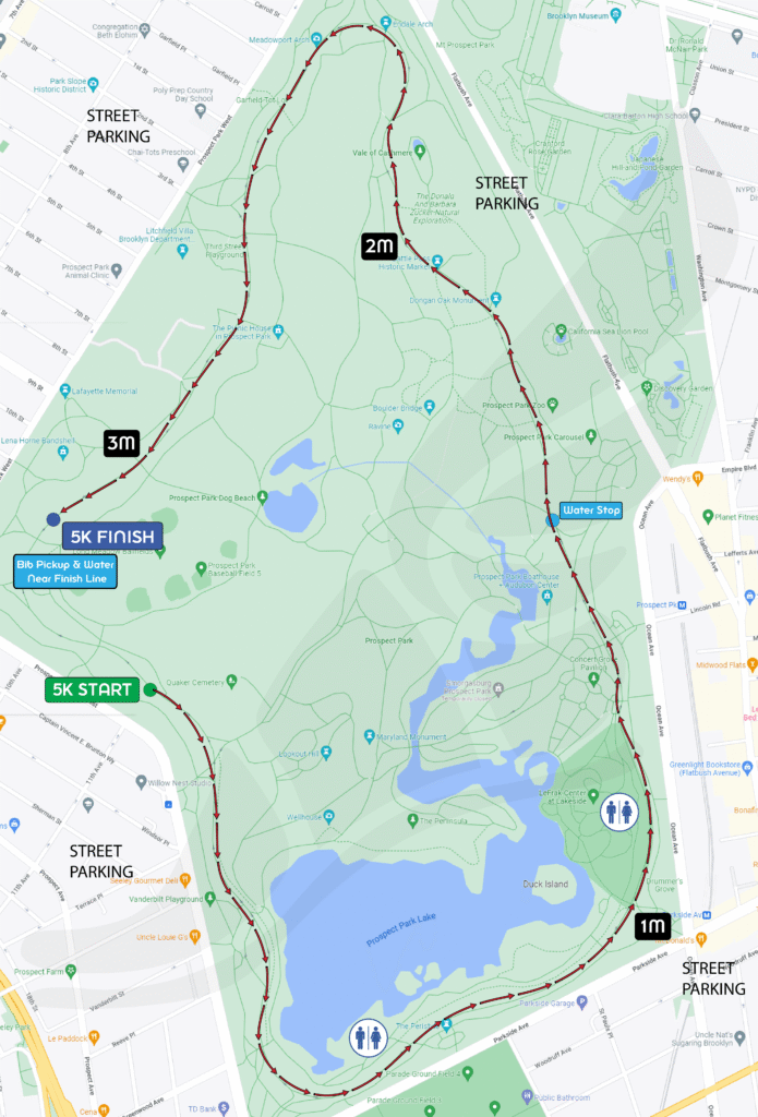 Our 5K is a loop around Prospect Park starting and finishing at the Bartel Pritchard Square entrance of the park. F/G trains or B68 to 15th Street/Prospect Park. We highly advise public transportation. Limited street parking available in Brooklyn.